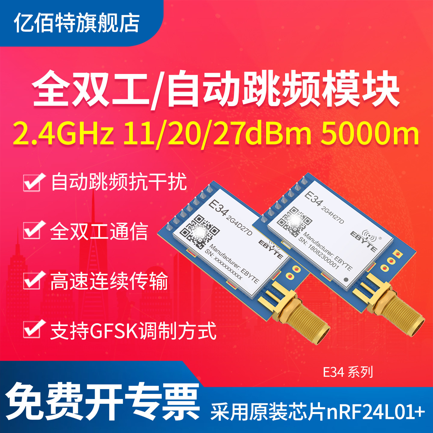 亿佰特2.4G模块全双工无线传输nrf24l01自动跳频高速透传大功率