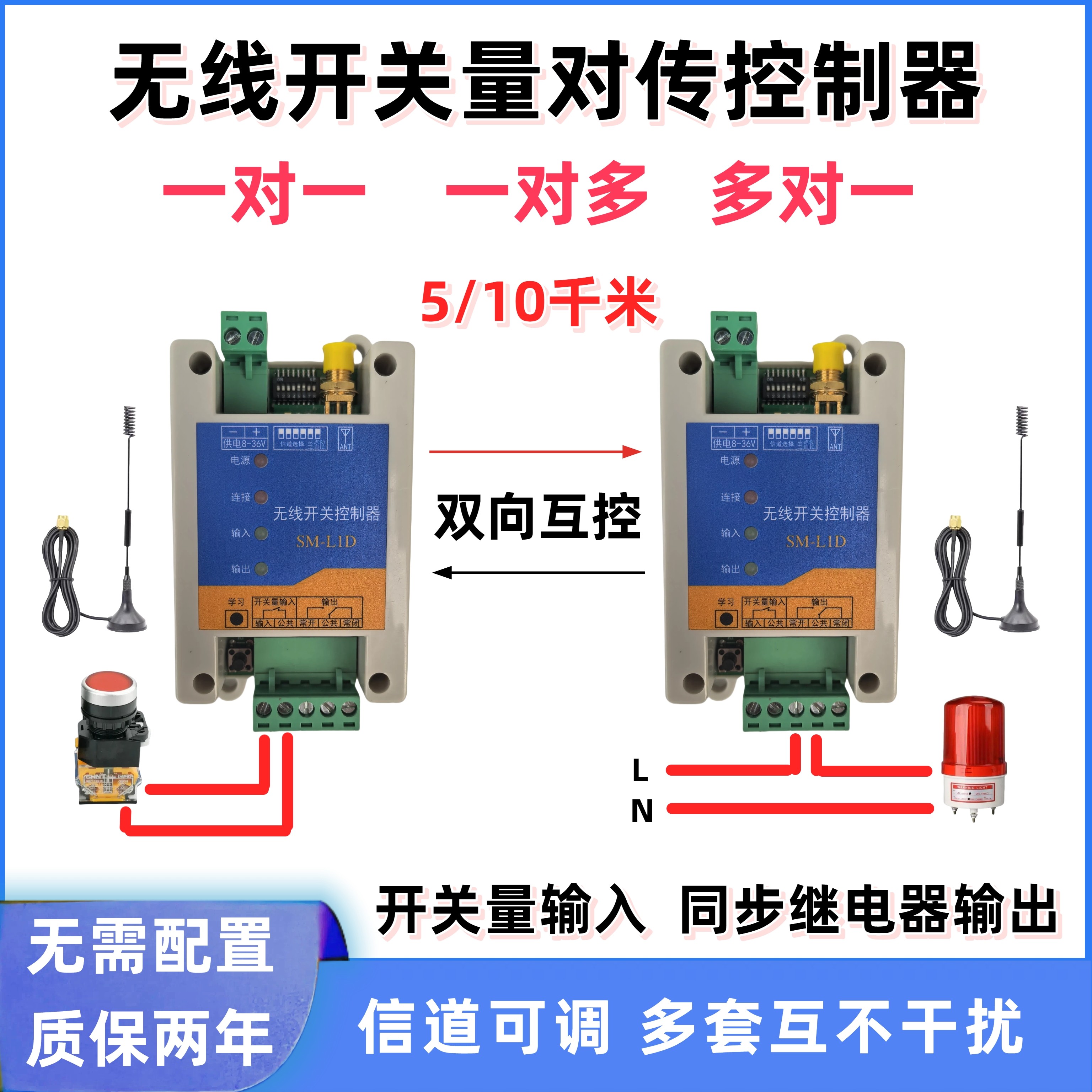 开关量无线传输模块远程遥控对传开关无线io双向反馈继电器控制器