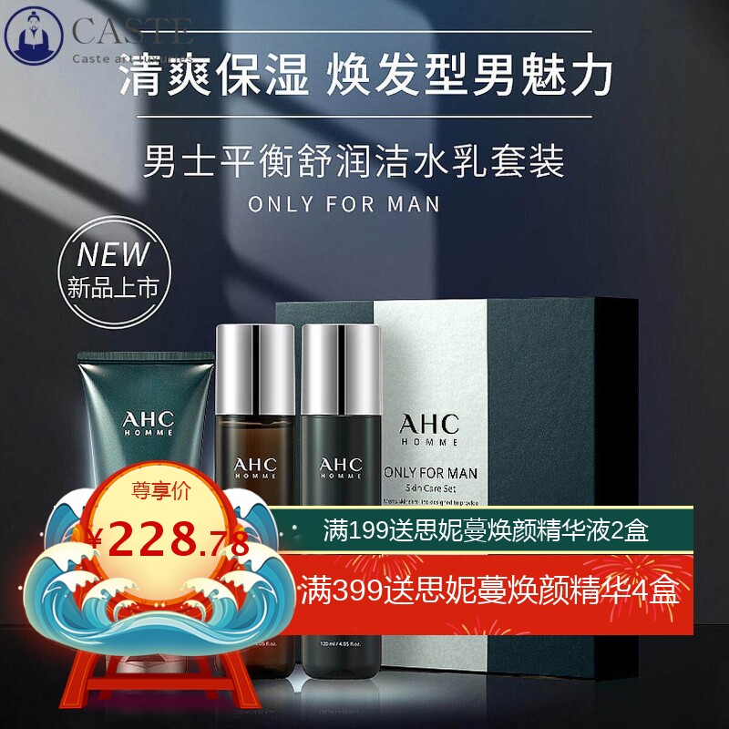 韩国AHC男士护肤三件套水乳洗面奶套盒装 控油补水保湿深层清洁亮