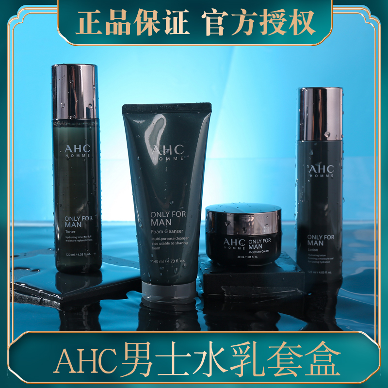 韩国AHC男士洗面奶水乳三件套装**男生清爽补水保湿护肤品套盒