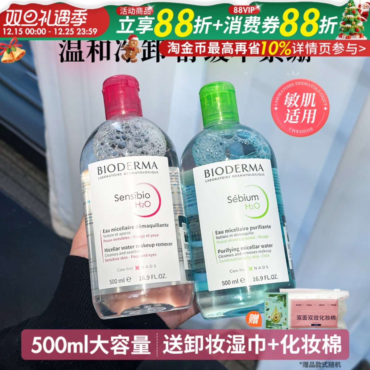 【百补】Bioderma贝德玛卸妆水粉水深层清洁500ml温和卸妆液