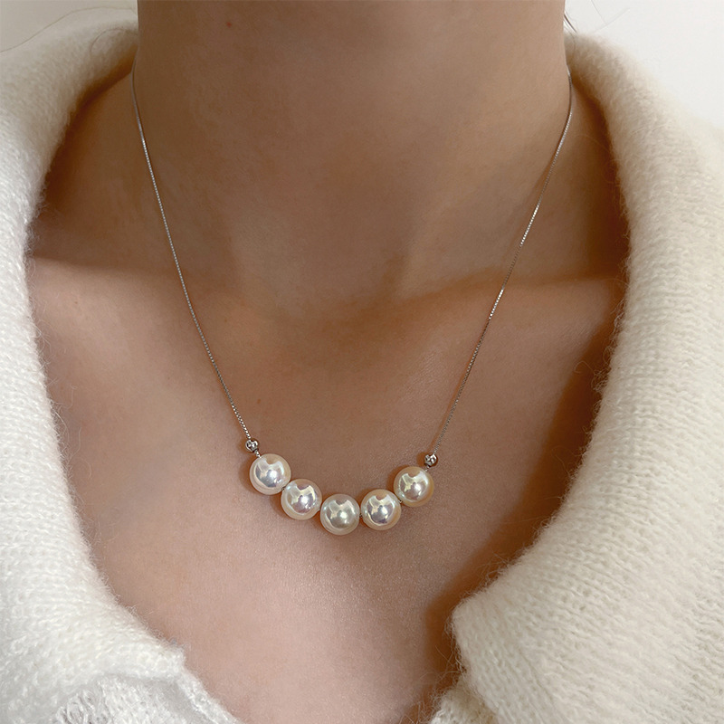 纯银微笑akoy珍珠项链7mm2025新款夏天毛衣链女士配饰颈链锁骨链