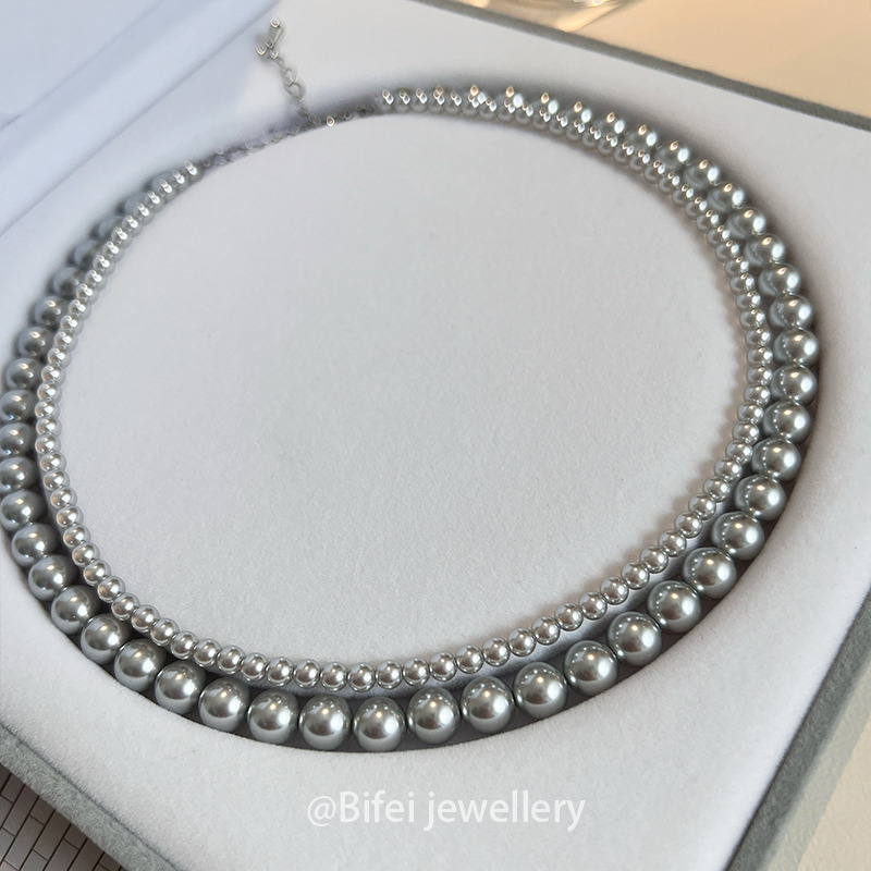 8mm灰色真多麻施家珍珠项链2025新款夏天毛衣链气质颈链轻奢女士