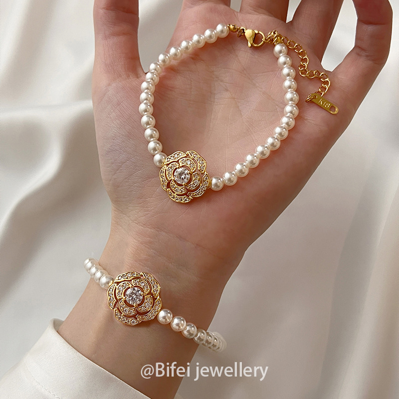 山茶花施家珍珠手链锆石轻奢气质手饰夏天2025新款毛衣链项链女士