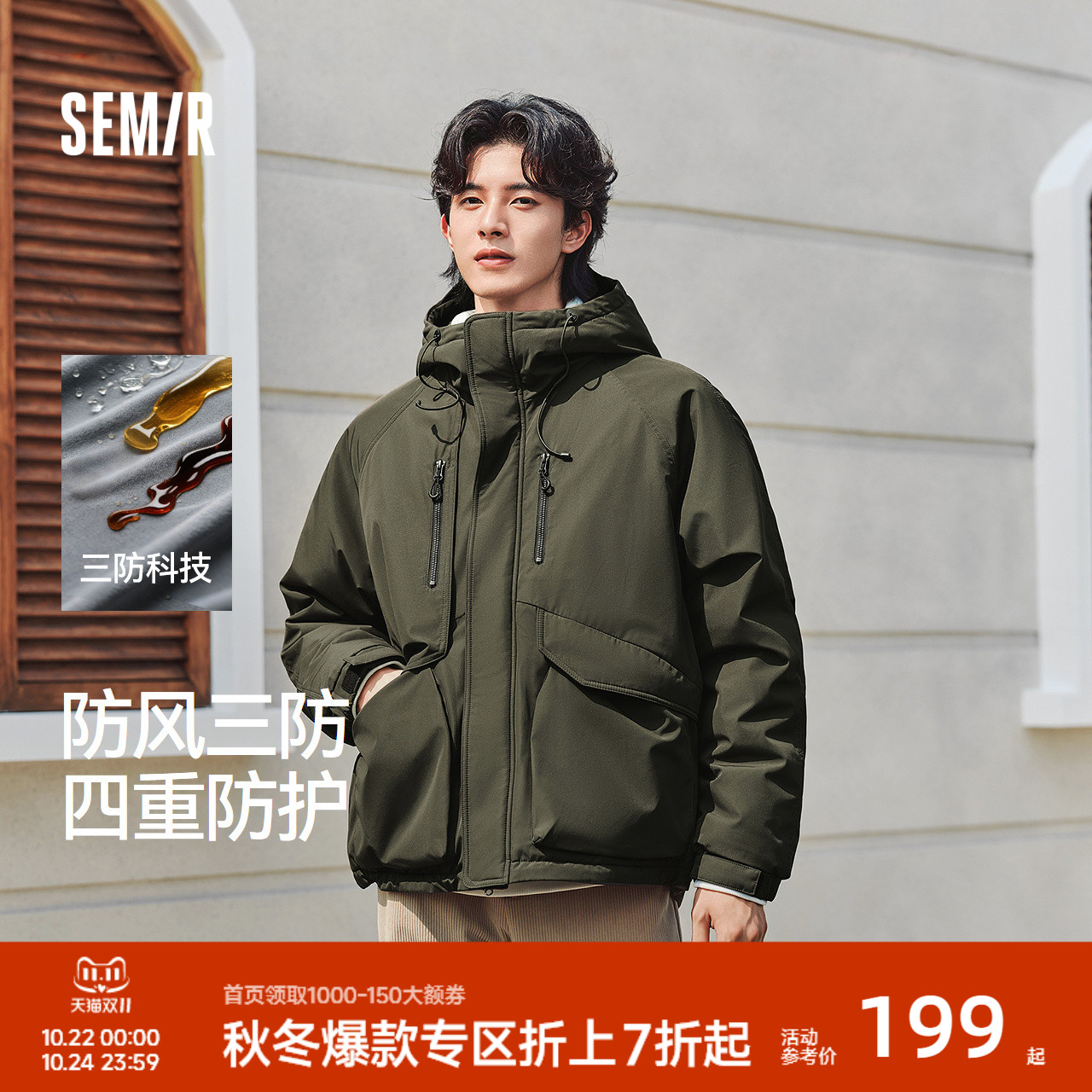 森马棉服男防风三防外套短款工装山系户外登山连帽上衣冬装轻薄款