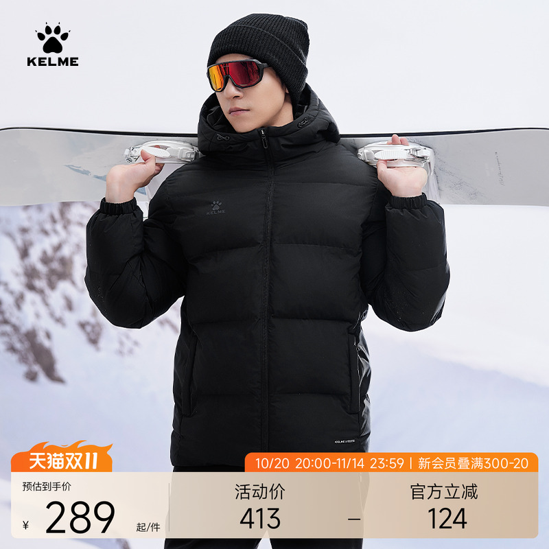 KELME卡尔美运动棉衣男秋冬新款面包服连帽外套加厚保暖短款棉服
