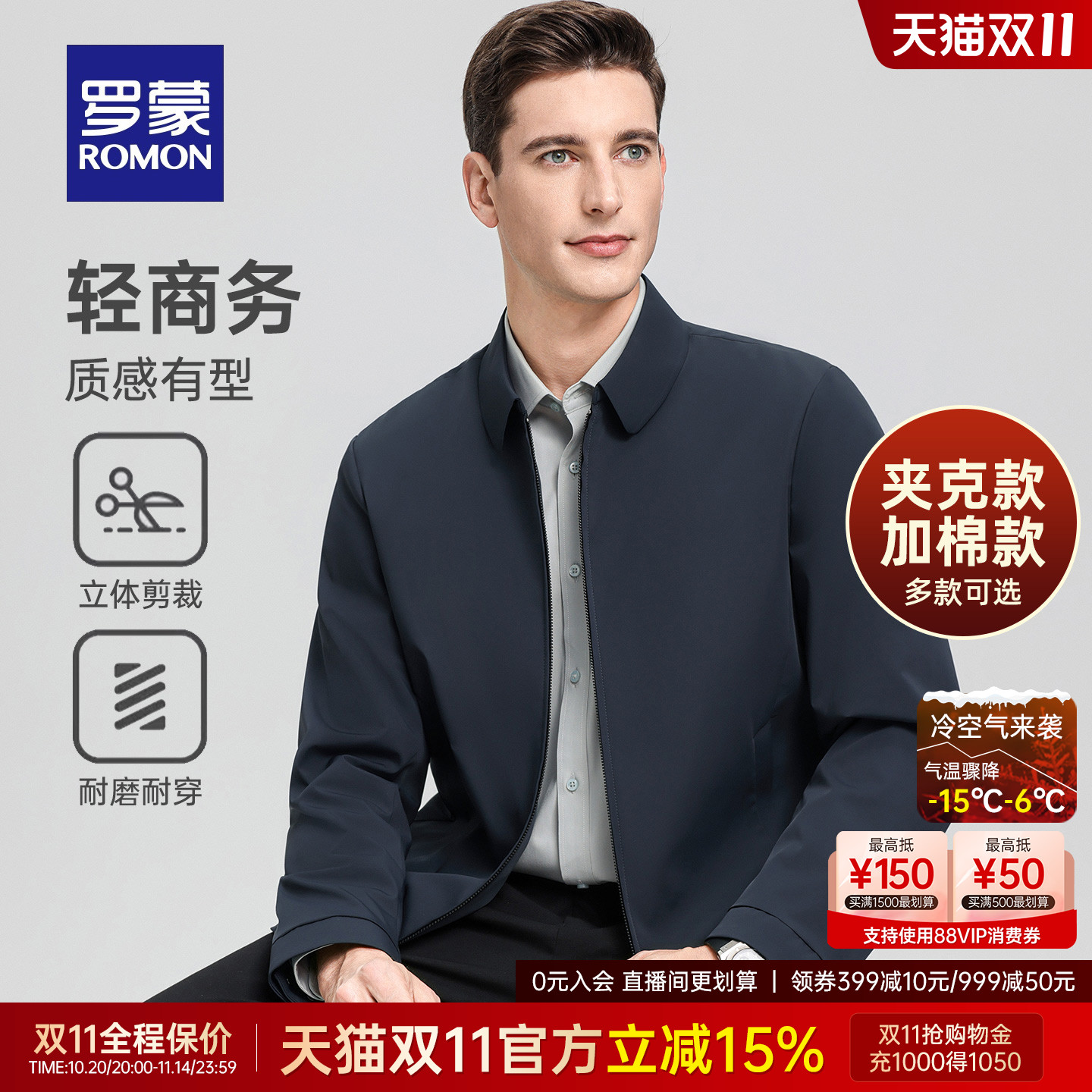 罗蒙男士翻领短款行政夹克衫2025秋冬新款商务干部装爸爸装棉服男