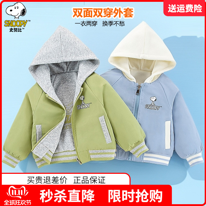 正品史努比童装男童短款厚外套2025秋冬装儿童双面穿棉衣连帽卫衣