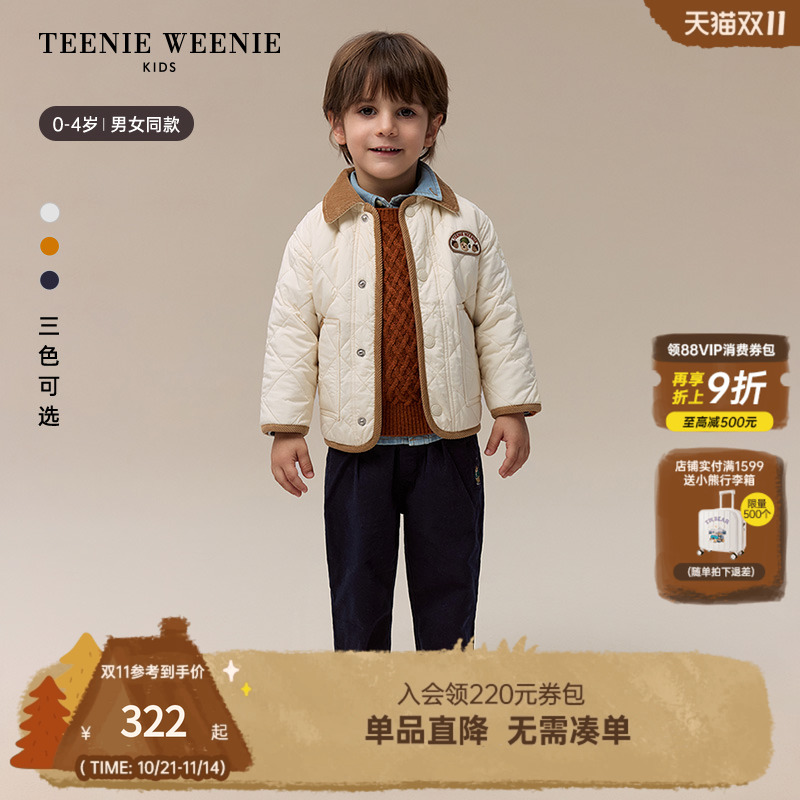 TeenieWeenie Kids小熊童装秋冬款男女宝宝短款菱格撞色棉服外套