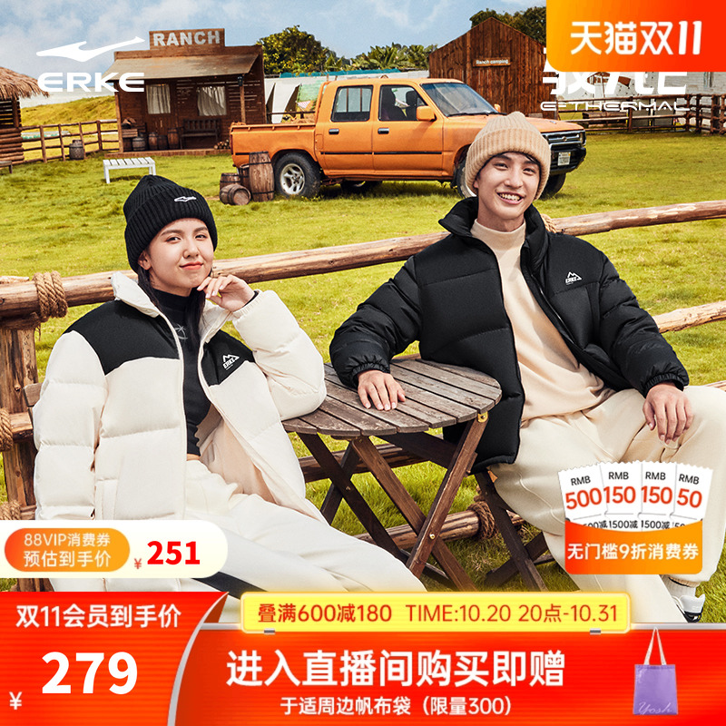 驭光2鸿星尔克羽绒服男冬季新款男士情侣女短款运动棉服夹克外套