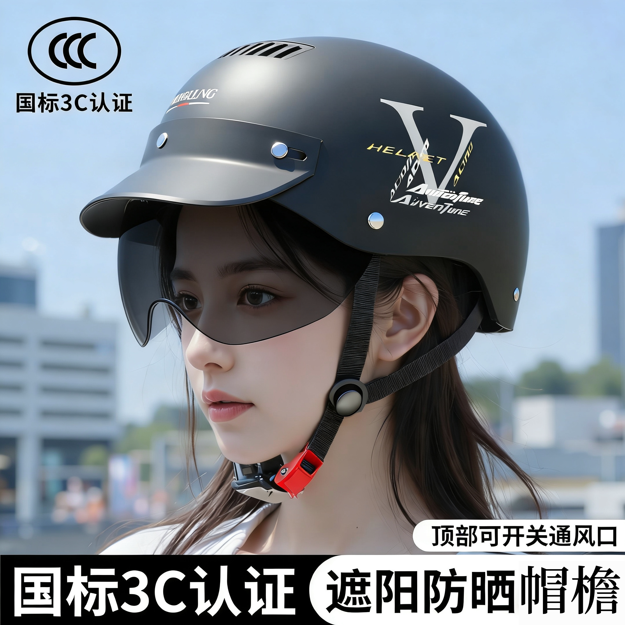 新国标3C电动车头盔女2025新款夏季男防晒透气头盔安全帽四季轻便