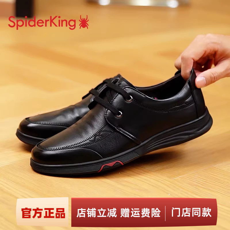 蜘蛛王休闲皮鞋男款2025新款小码35 36男鞋子真皮大码46 47爸爸鞋
