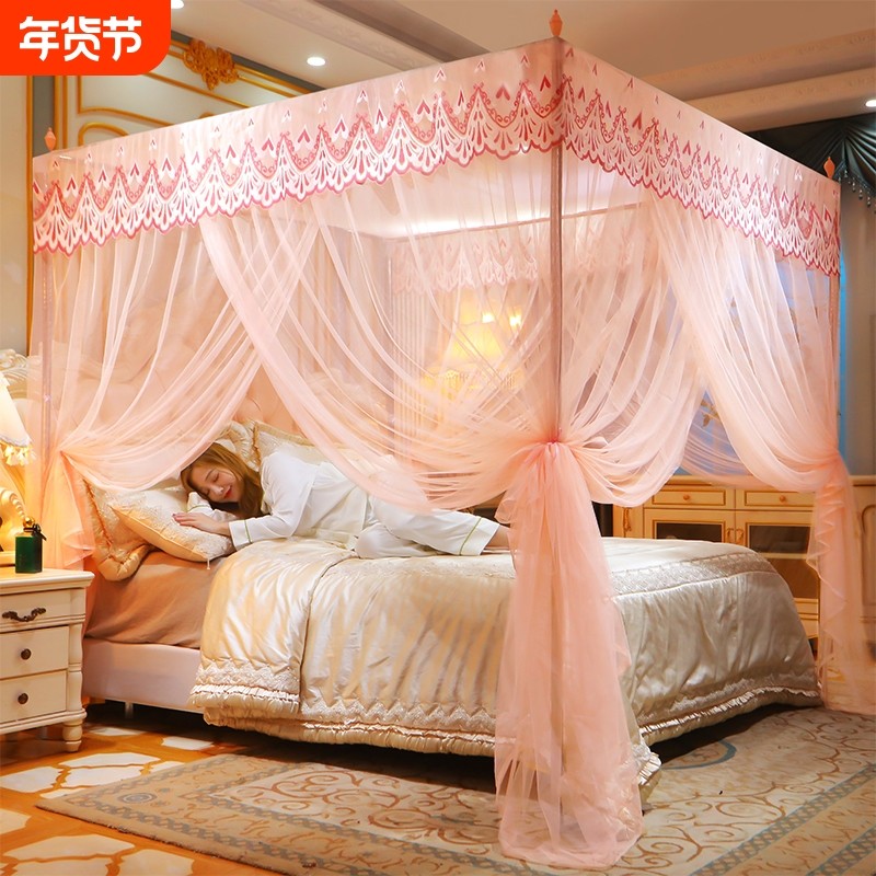 双层色公主风落地蚊帐三开门家用耐用不锈钢四柱支架加密1.51.8米