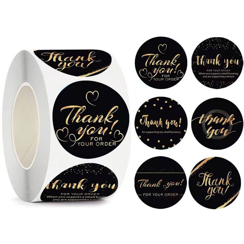 500贴/卷批发卷装英文thankyou感谢贴纸黑色不干胶圆形标签贴画