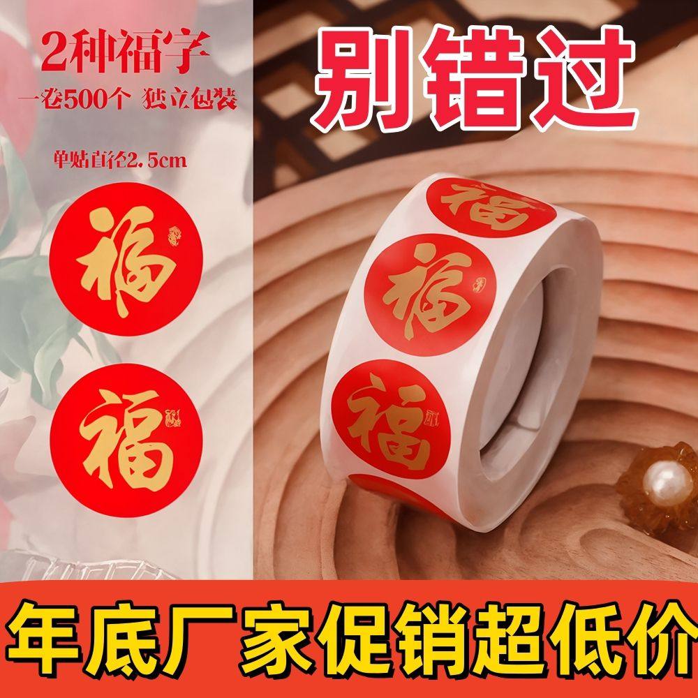 2026春节新年福字贴纸圆形封口贴不干胶标签新年贴纸福字贴粘贴式