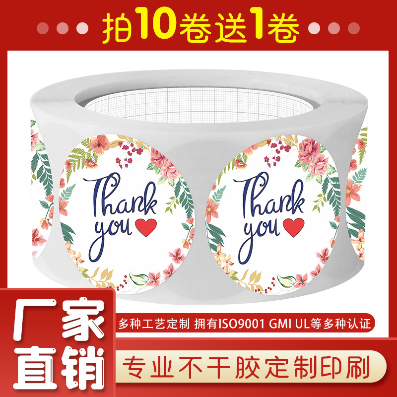 烘焙感谢贴纸 铜版纸卷筒不干胶圆形标签 thank you贴纸
