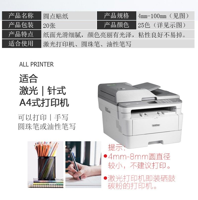 彩色圆点贴纸a4不干胶圆形标签背胶贴空白可手写打印月份数字logo