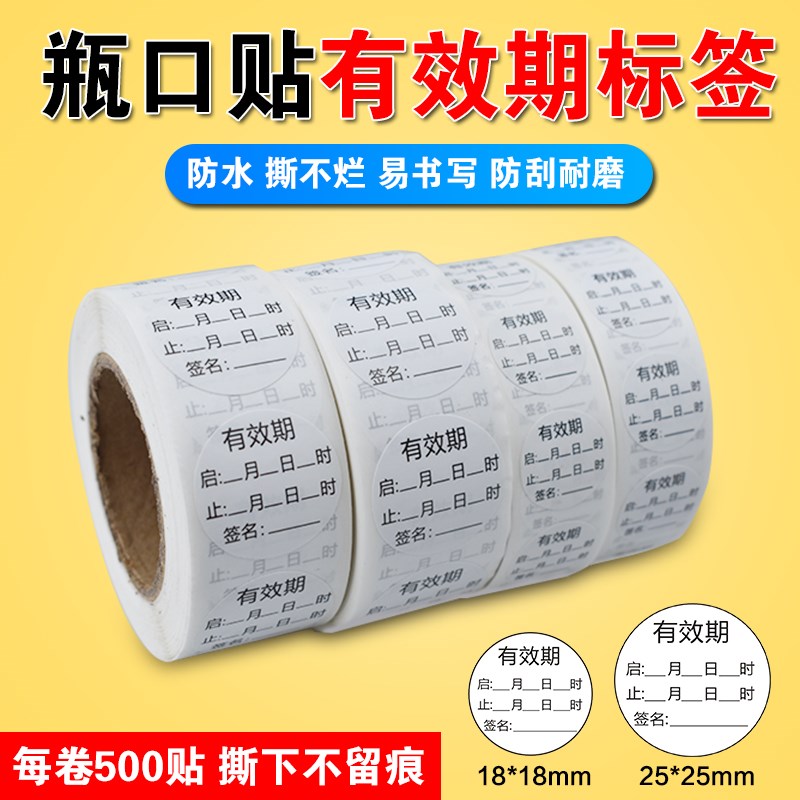 有效期标识护理标签医院用瓶口贴管道标示开启起止不干胶圆形标签