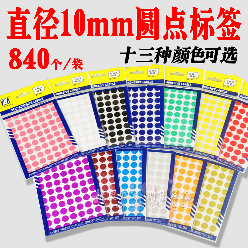 授权卓联自粘不干胶圆形标签ZL30圆点10mm彩色贴纸彩色标签贴