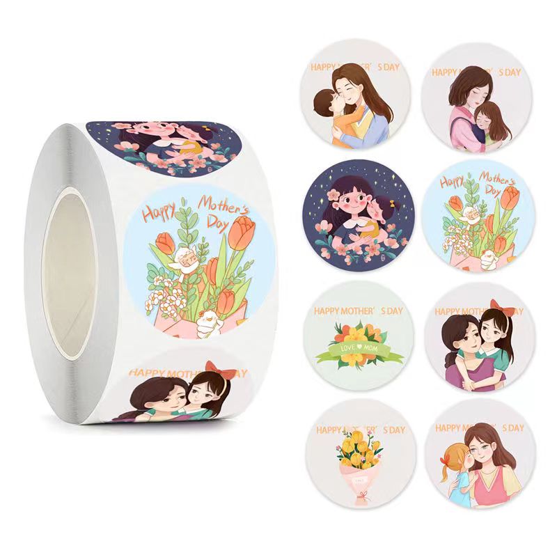 500贴/卷紫色蝴蝶花卉贴纸高颜值商品包装装饰不干胶圆形标签贴