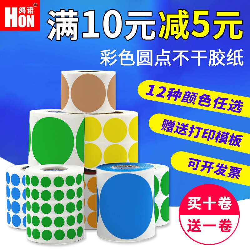 鸿诺彩色卷装圆点不干胶圆形标签纸铜版纸取口纸数字标签贴打印纸