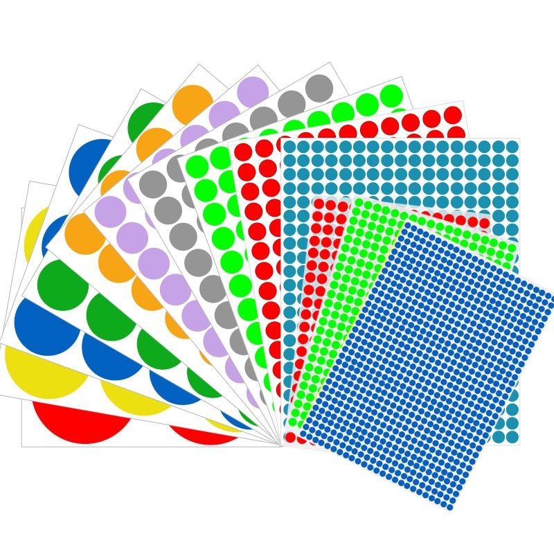 汉唐彩色圆形不干胶4mm圆形贴纸铜版纸光面红黄蓝绿白色圆点不干胶标签环保标签手写ABC字母贴纸数字定制印刷