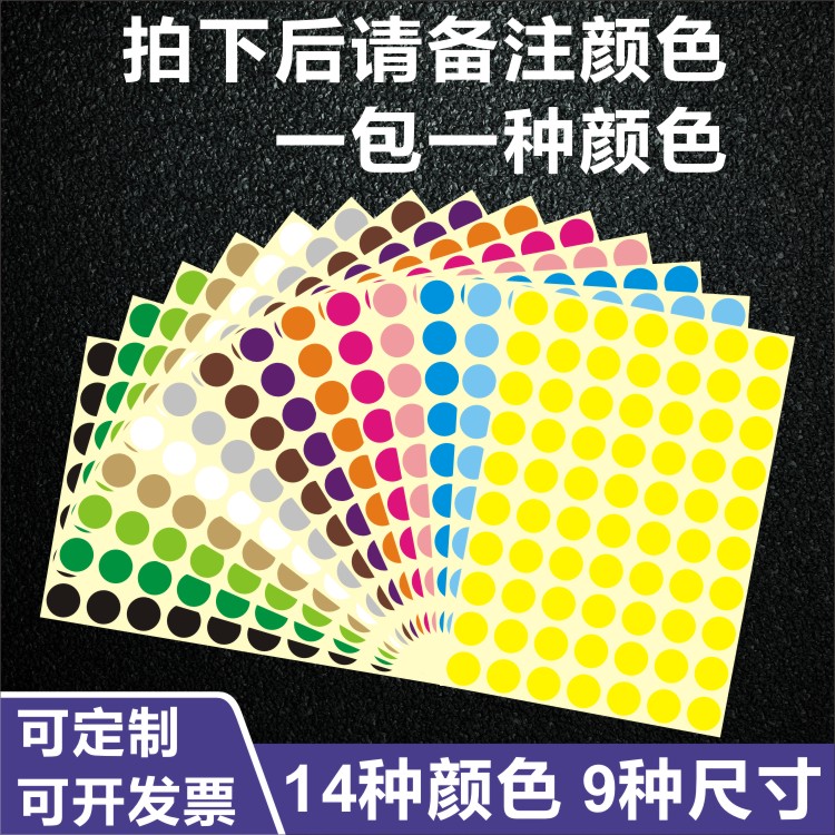 彩色圆点贴圆贴纸圆形不干胶标签纸手写可粘贴小尺寸小圆点小标签贴纸圆圈数字号码编码编号贴红色颜色大号圆