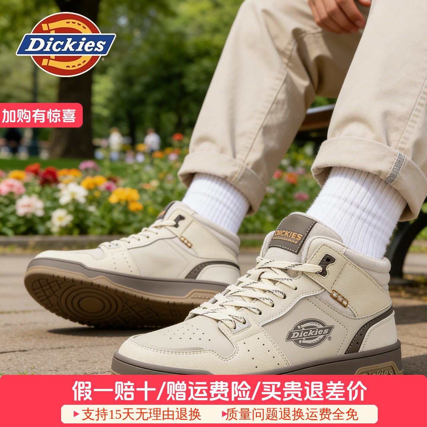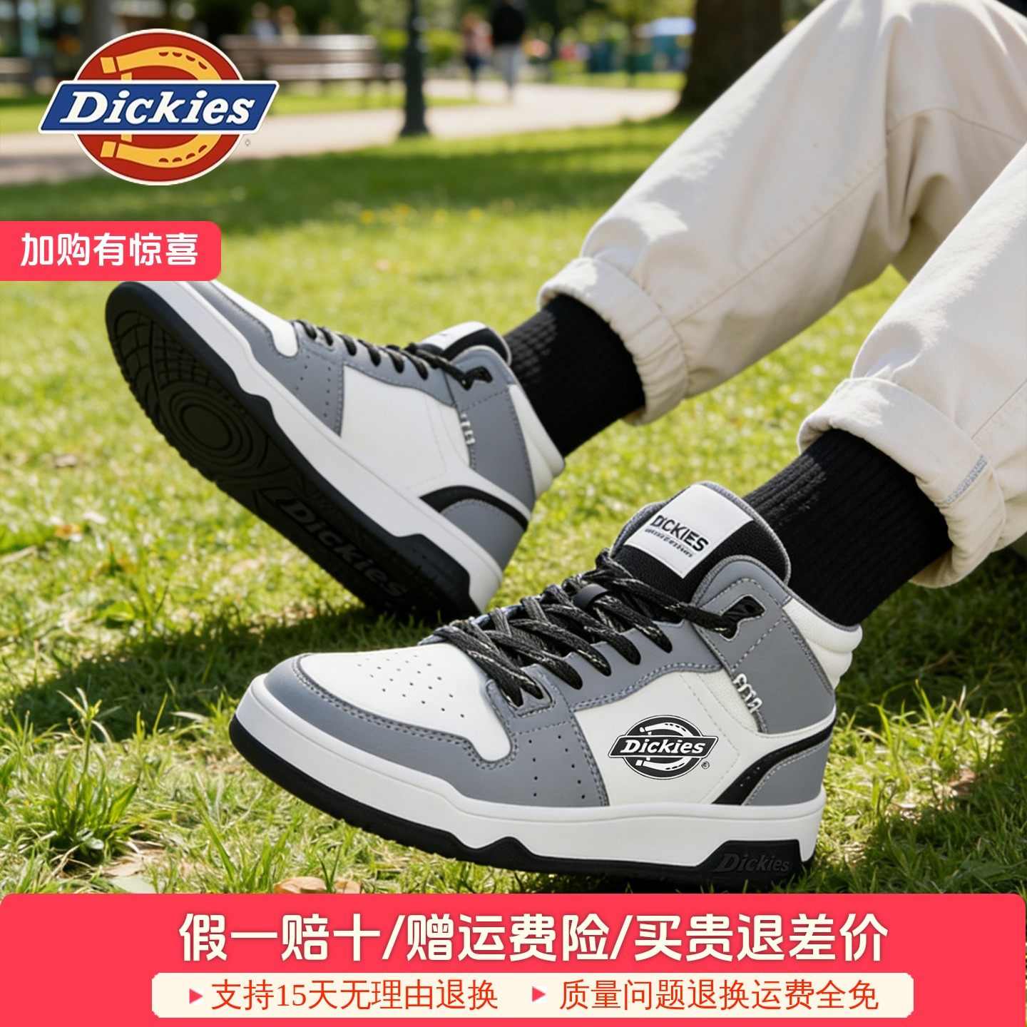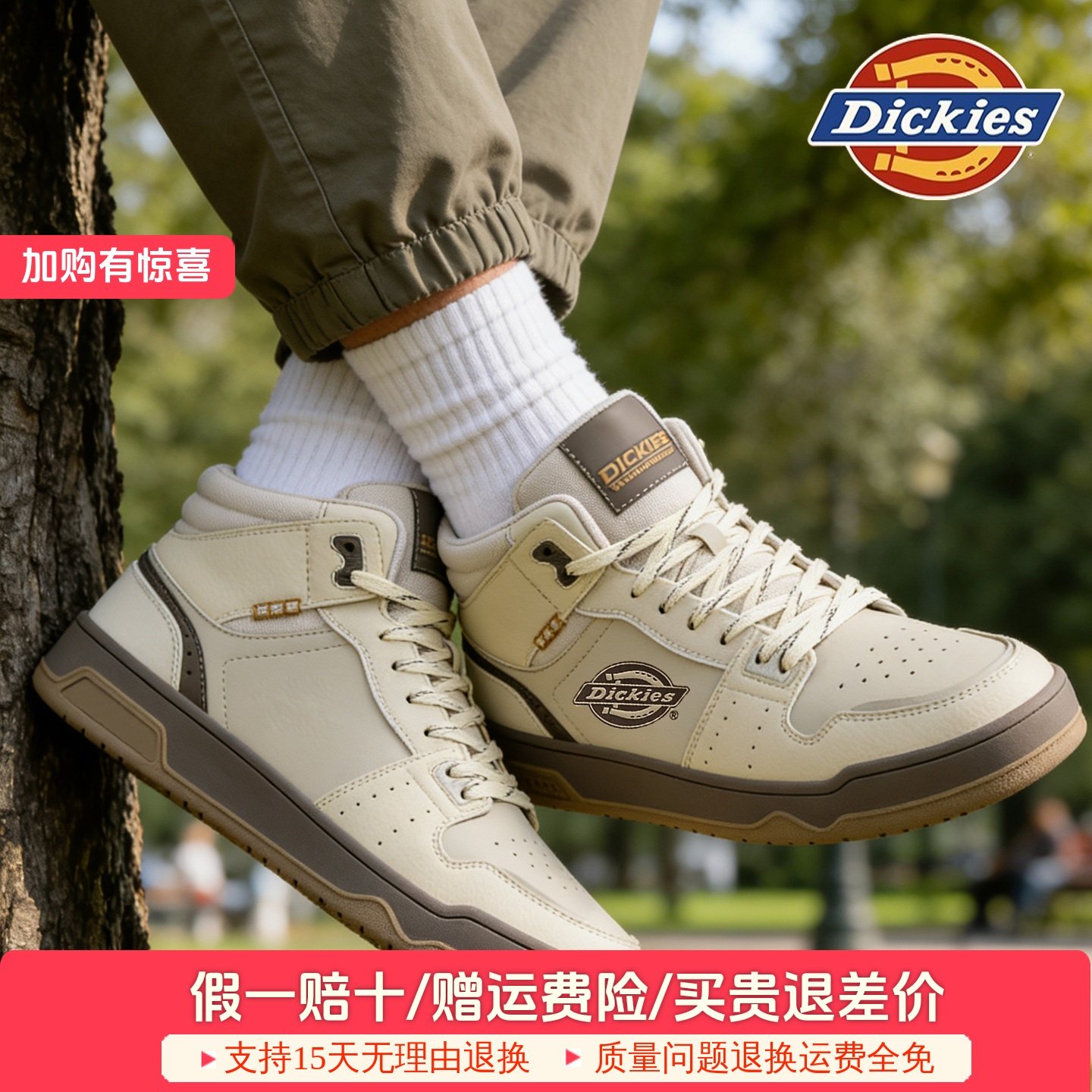 Dickies皮质板鞋男鞋子2025秋冬新款复古高帮休闲运动鞋潮鞋百搭