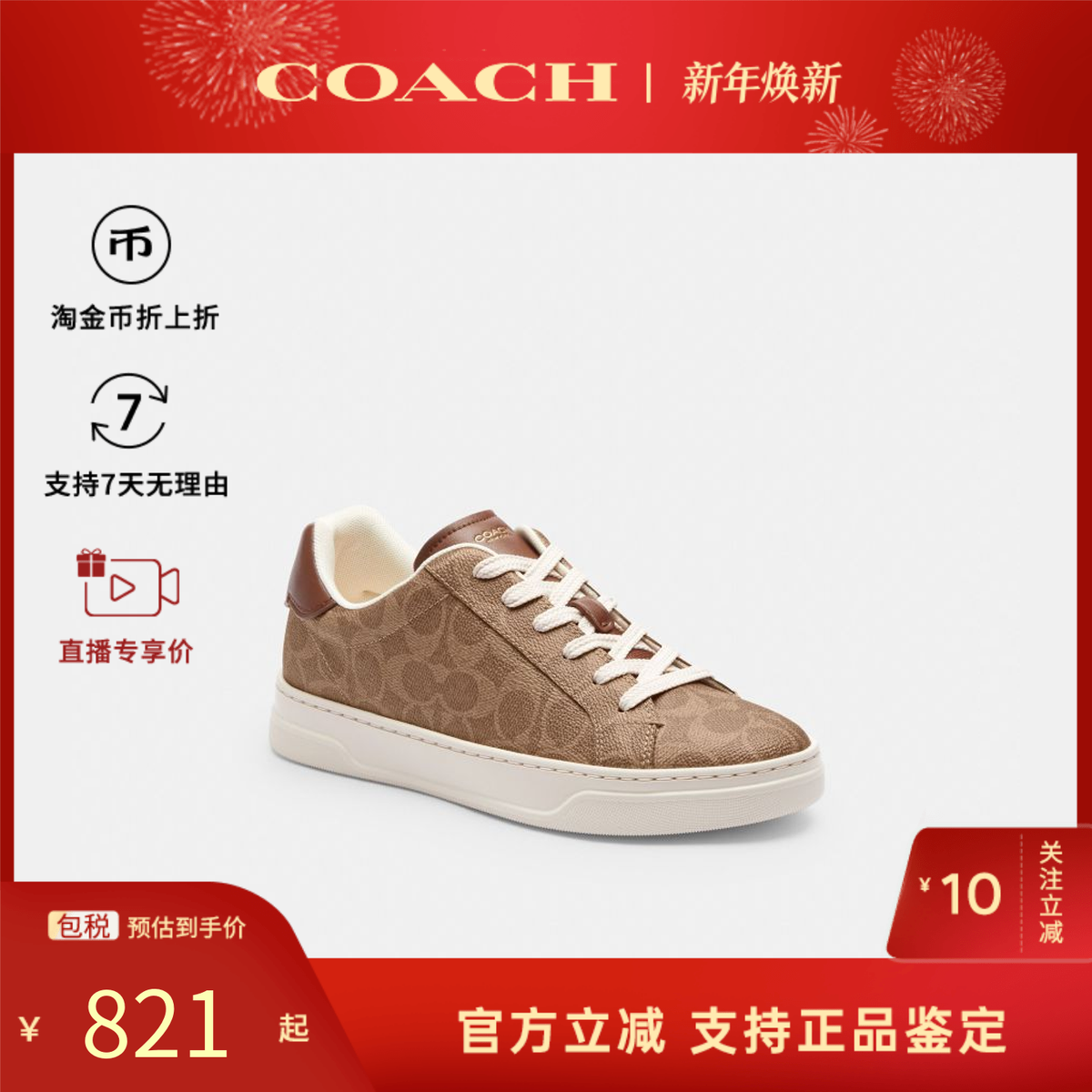 COACH/蔻驰经典老花highline男女士百搭时尚皮质休闲鞋板鞋运动鞋