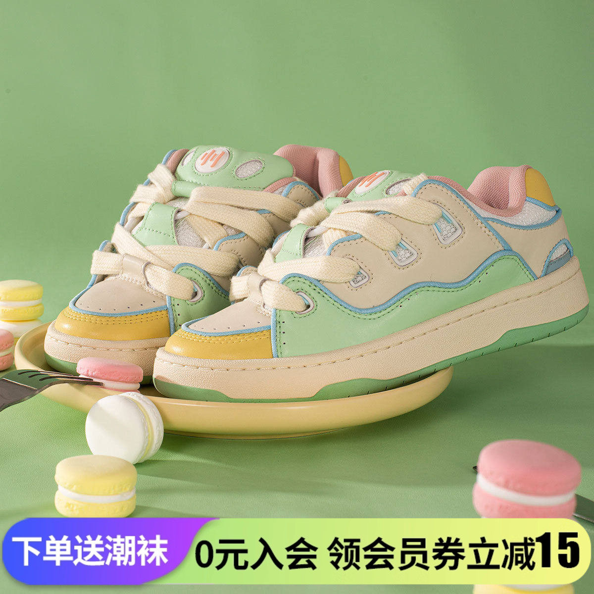 顽刻ollieskate面包鞋马卡龙多巴胺全新皮质BAKE2男女国潮滑板鞋