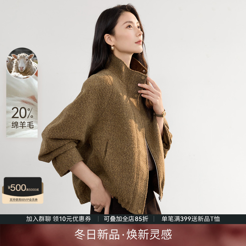 雪中飞妈妈装新款2025秋季流行穿搭羊毛短款外套休闲时尚毛呢上衣