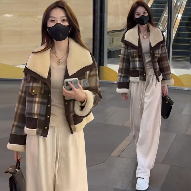 爆款格子加厚小香风外套女装秋冬新款今年流行小个子洋气毛呢上衣