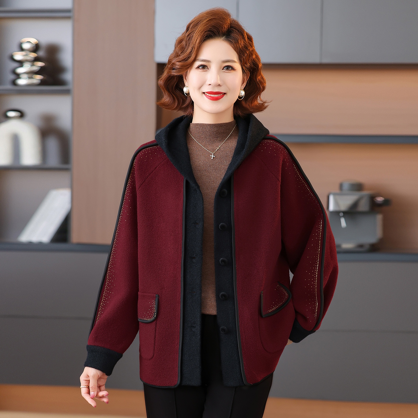 妈妈秋装羊毛洋气针织外套中老年人女2025新款秋冬连帽毛呢上衣服