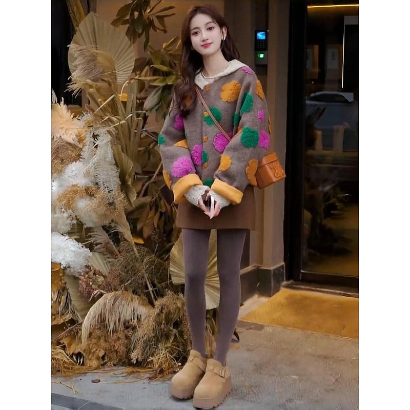 CyNi【雾中蔷薇】慵懒休闲百搭连帽上衣针织拼接费尔岛毛呢外套