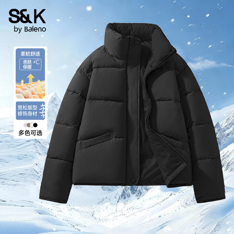班尼路S&K系列黑色立领棉服外套女冬季新款小个子短款显瘦面包服Q