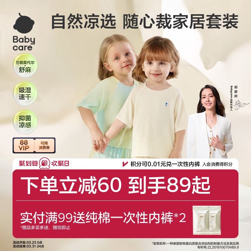 babycare儿童睡衣优可丝女童内衣套装男童家居服宝宝春夏居家打底