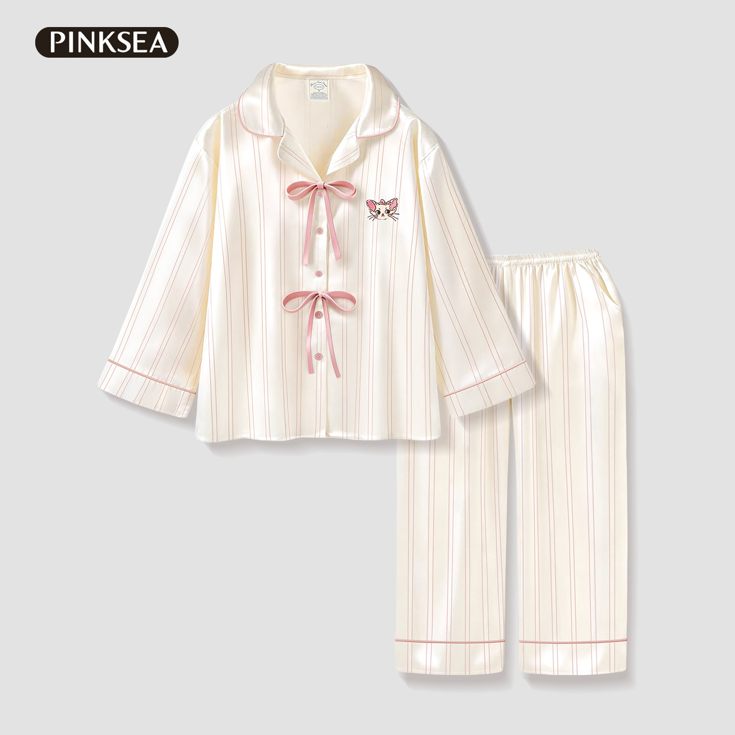Pinksea睡衣女春秋款防静电A类冰丝长袖家居服甜美高级感条纹套装