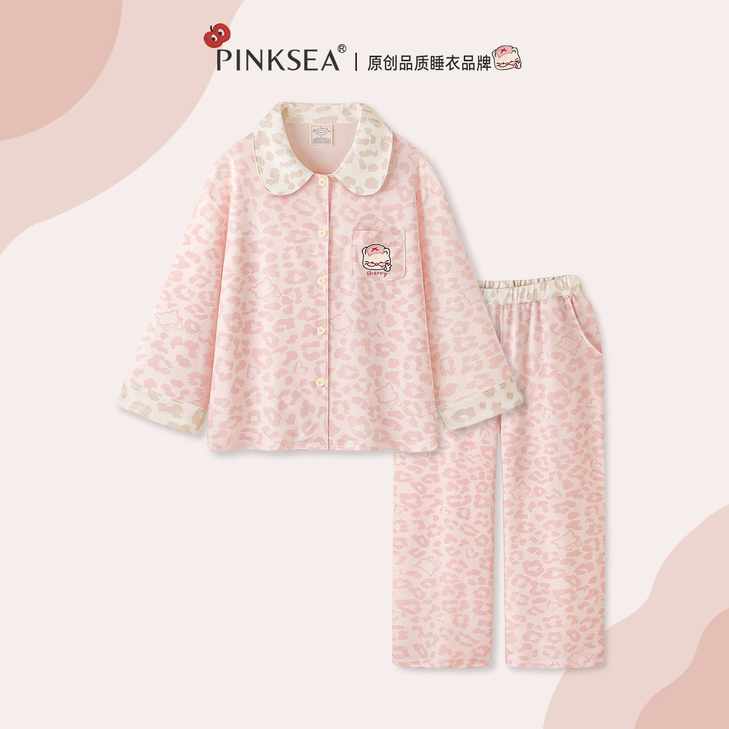 Pinksea纯棉睡衣女粉色春秋长袖长裤套装2026新款甜美女款家居服