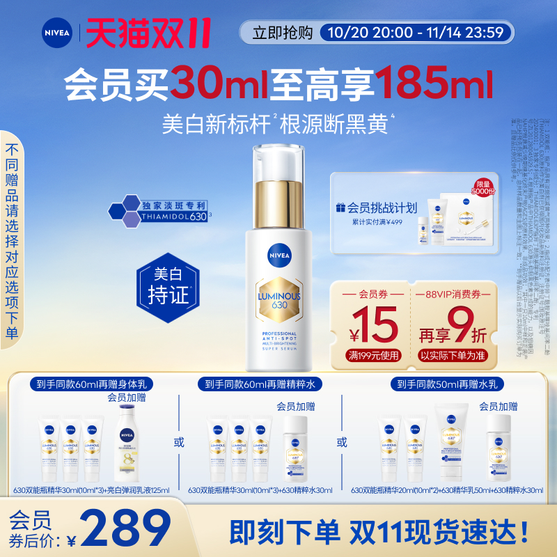 【双11狂欢】妮维雅630双能瓶精华抗糖美白淡斑补水官方正品面部