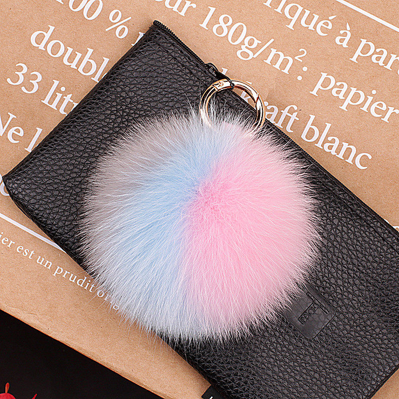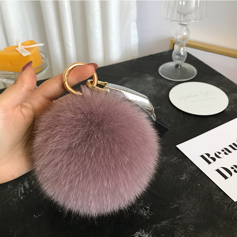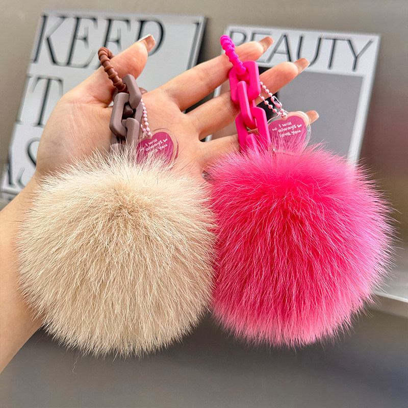进口狐狸毛毛球挂件可爱毛绒汽车钥匙扣真皮草包包挂饰ins小毛球