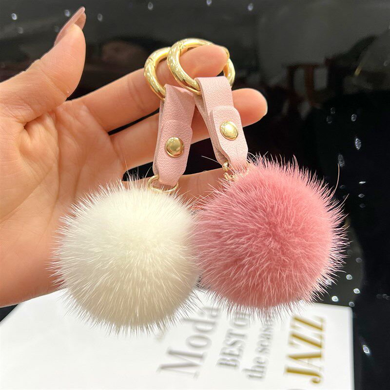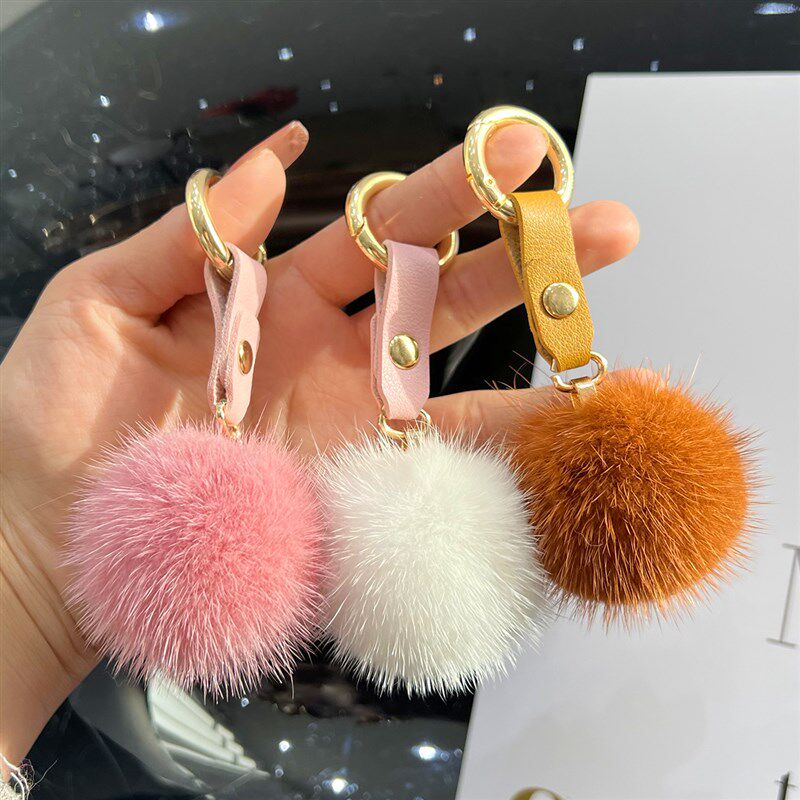 mini水貂毛毛球包包挂件可爱高档简约个性毛绒汽车钥匙扣挂饰配饰