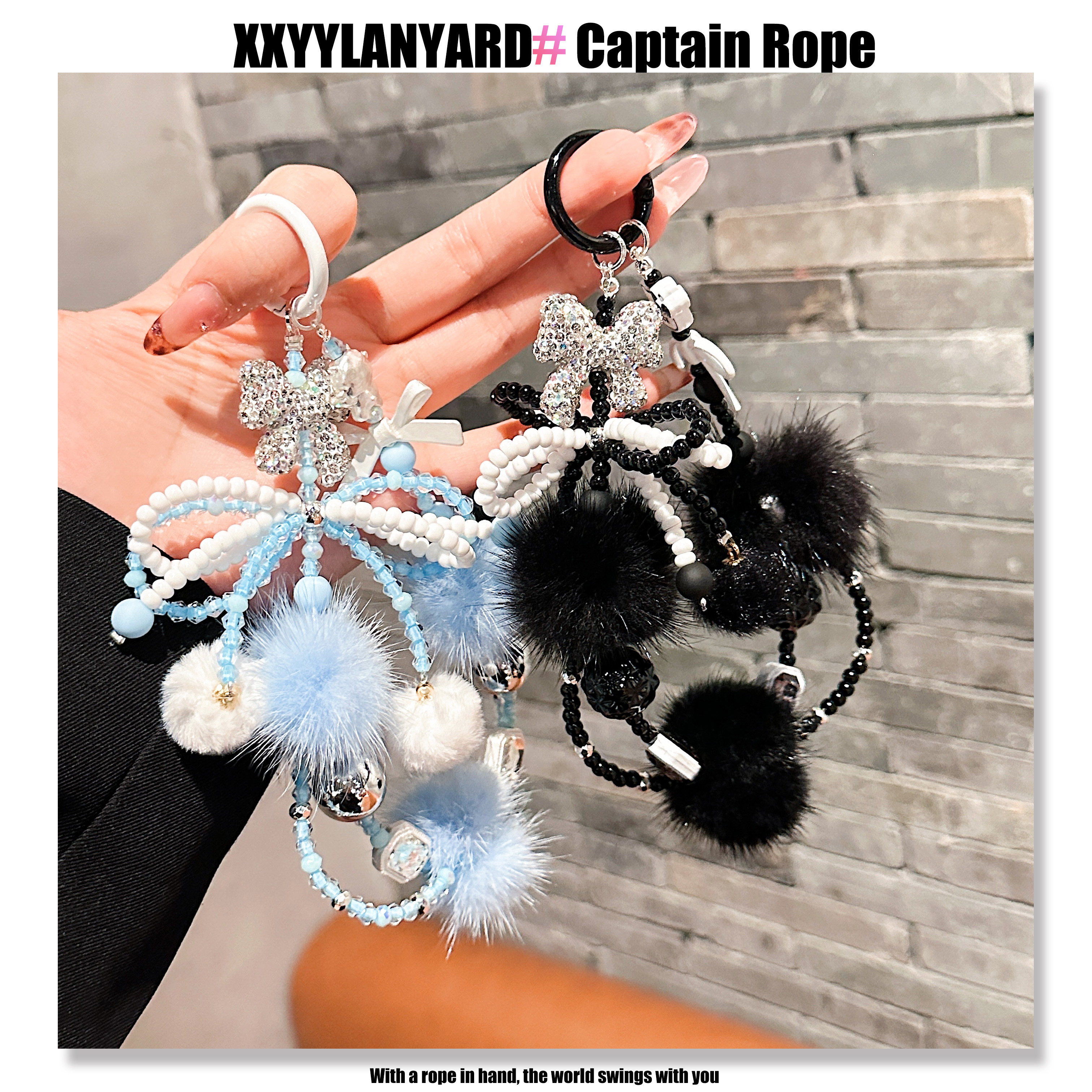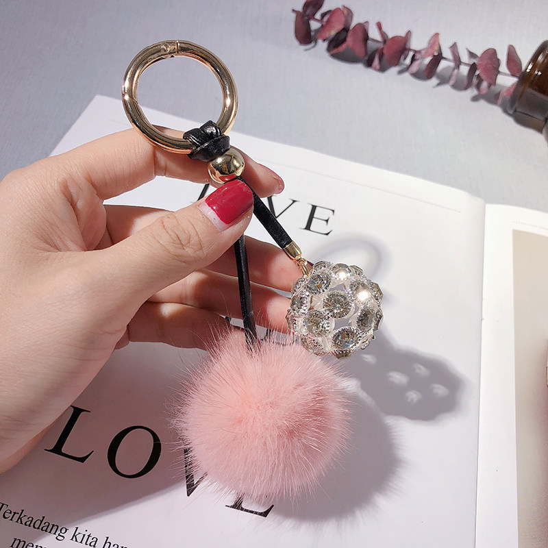 时尚水貂毛毛球钥匙扣汽车个性女士镶钻钥匙链圈简约包包挂件韩版