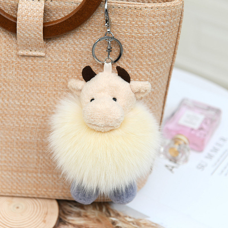 【小牛】可爱狐狸毛毛球汽车钥匙扣挂饰个性简约高档毛绒包包挂件