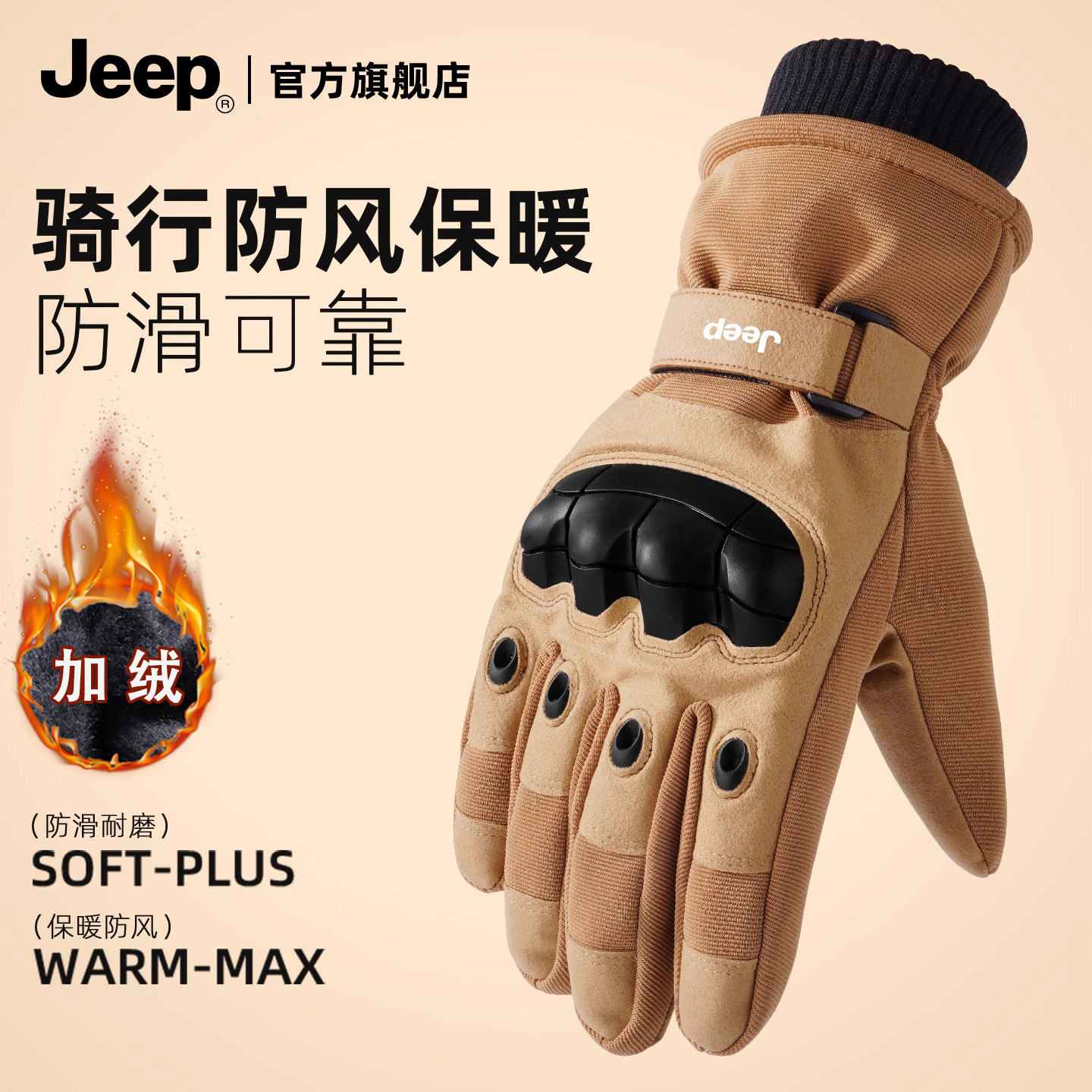 JEEP SPIRIT吉普骑行手套冬季户外防风加绒加厚骑行摩托车手套男