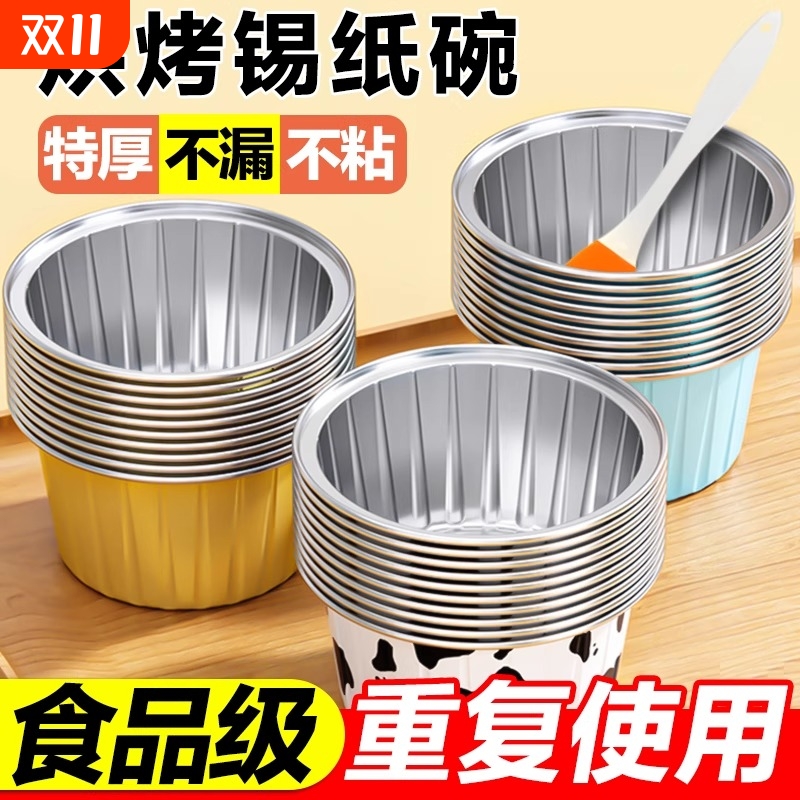 空气炸锅专用锡纸碗可重复使用家用烤箱蛋糕布丁杯烘焙模具锡纸盒