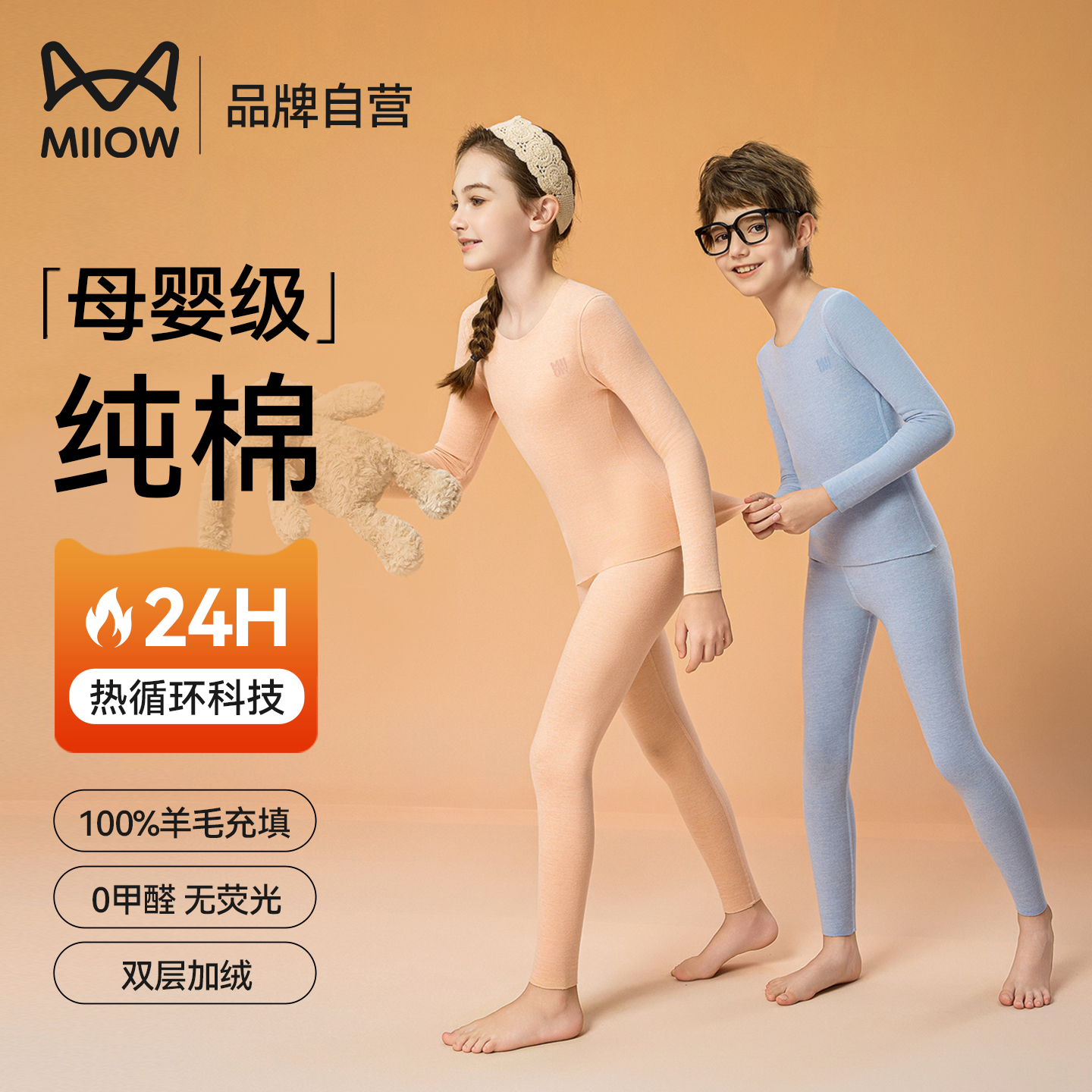 猫人儿童秋衣秋裤套装全棉a类男童女童100%纯棉保暖内衣10A抗菌