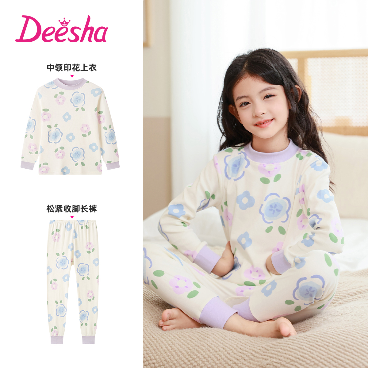 笛莎女童秋衣秋裤保暖内衣套装纯棉A类宝宝儿童全棉抑菌睡衣冬季