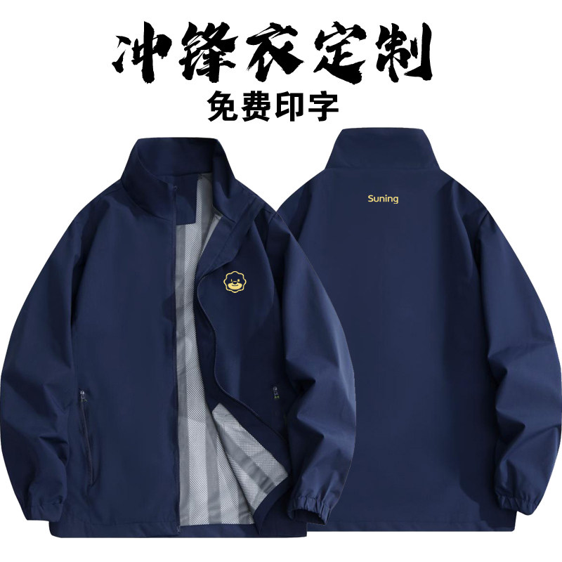 冲锋衣定制苏宁新款工作服春秋季外套防水防风洗车店工服印字LOGO