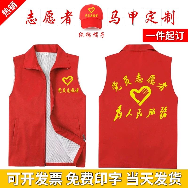 志愿者马甲定制党员义工红色背心活动公益广告衫工作服装印字logo