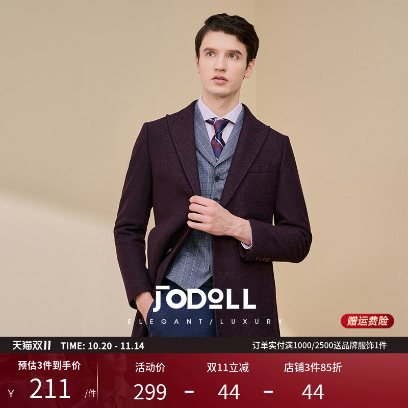 JODOLL乔顿男士中长款100%绵羊毛大衣冬季英伦修身戗驳领毛呢外套